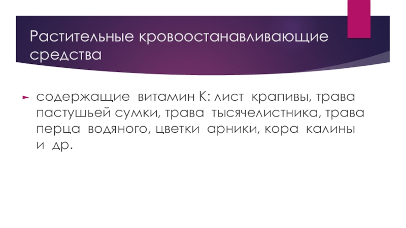 содержащие витамин К: лист крапивы, трава пастушьей сумки, трава