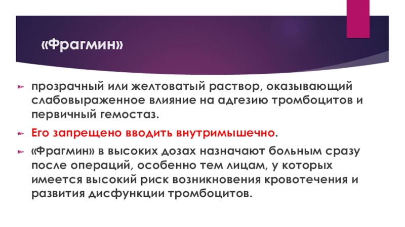 (после операций на легких, предстательной, поджелудочной и щитовидной железах, при заболеваниях печени, острых панкреатитах, массивных переливаниях крови, легочном кровотечении при туберкулезе, передозировке фибринолитических средств и др.).