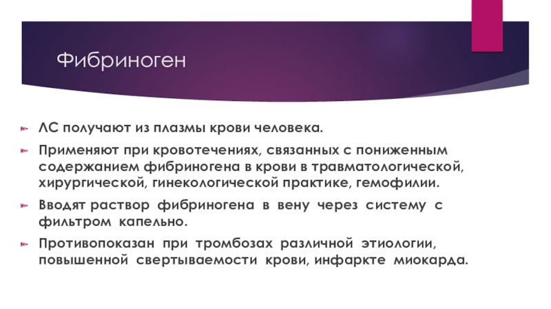 с пониженным содержанием фибриногена в крови в травматологической, хирургической, гинекологической практике, гемофилии.