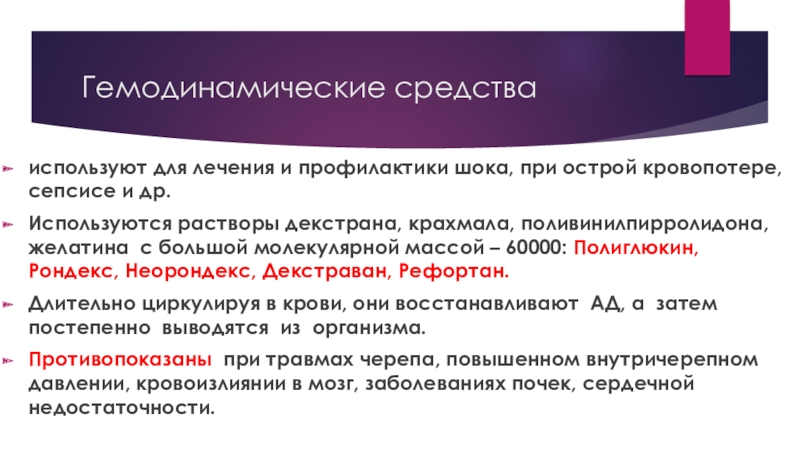 используют для лечения и профилактики шока, при острой кровопотере, сепсисе