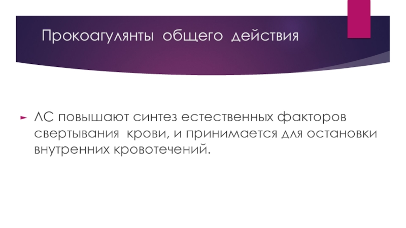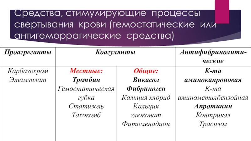 ЛС повышают синтез естественных факторов свертывания крови, и принимается