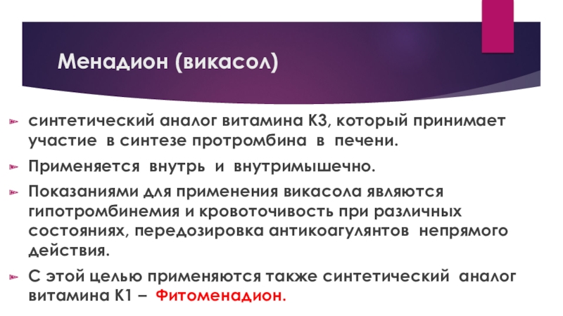 синтетический аналог витамина К3, который принимает участие в синтезе