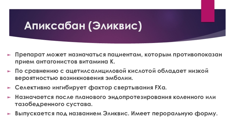 Угнетает фермент циклооксигеназу в тромбоцитах и препятствует синтезу тромбоксана А2.