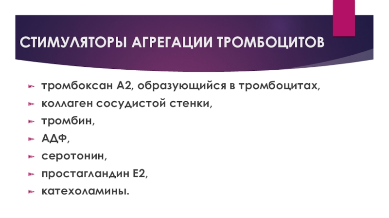 Слайд 21СТИМУЛЯТОРЫ АГРЕГАЦИИ ТРОМБОЦИТОВ