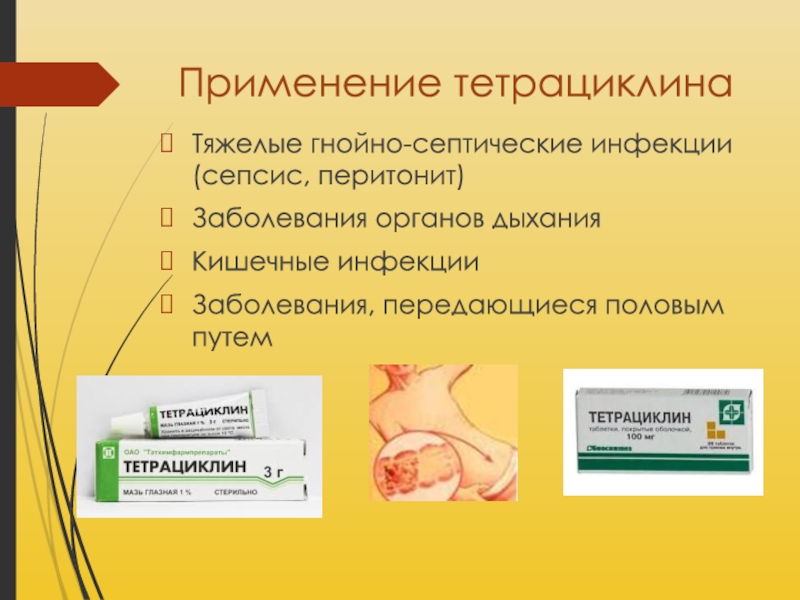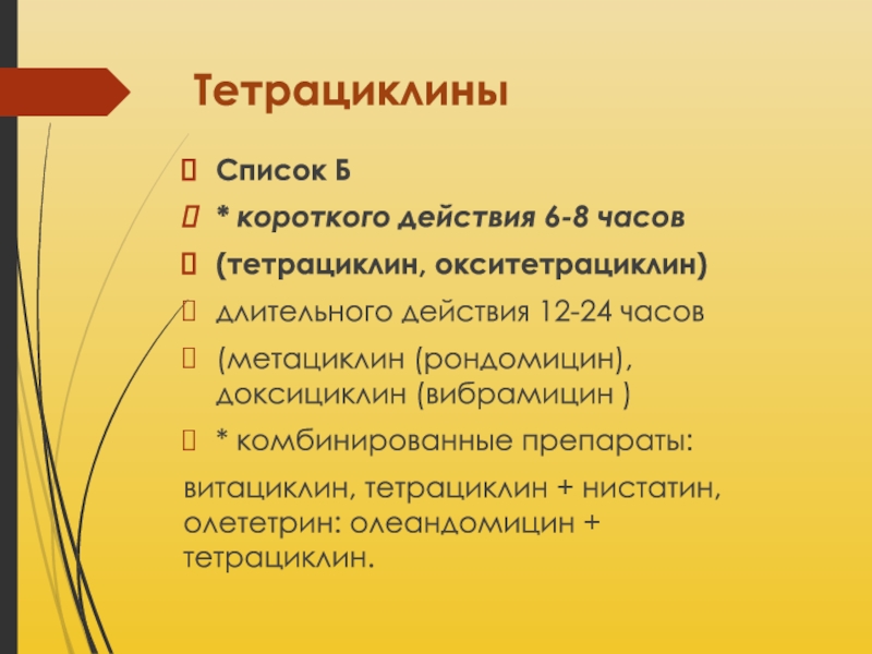 витациклин, тетрациклин + нистатин, олететрин: олеандомицин + тетрациклин.