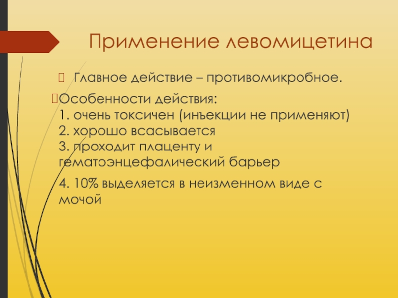 Применение: превосходит тетрациклины и применяется как основной антибиотик при: пищевых токсикоинфекциях (сальмонеллез), брюшном тифе, мочевых инфекциях.