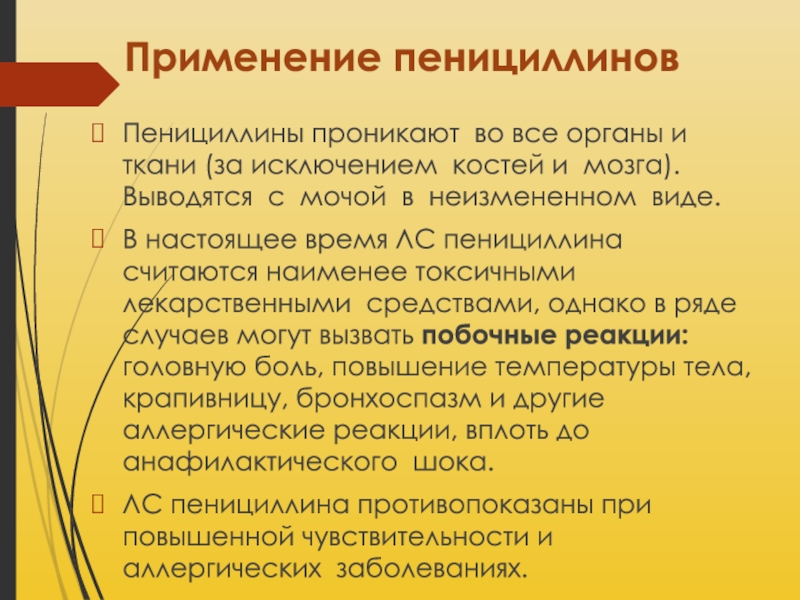 Пенициллины проникают во все органы и ткани (за исключением костей