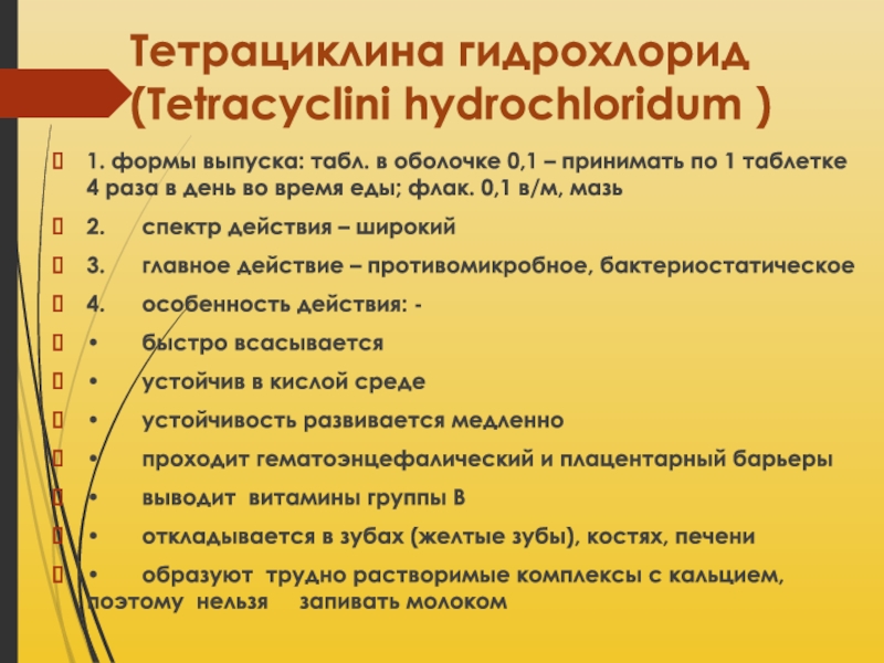 Слайд 31Профилактика побочных действий тетрациклинов.