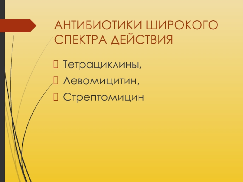 Слайд 26АНТИБИОТИКИ ШИРОКОГО СПЕКТРА ДЕЙСТВИЯ