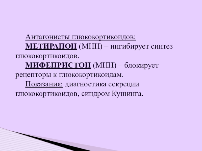 МЕТИРАПОН (МНН) – ингибирует синтез глюкокортикоидов.