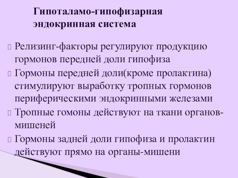 пролактина) стимулируют выработку тропных гормонов периферическими эндокринными железами