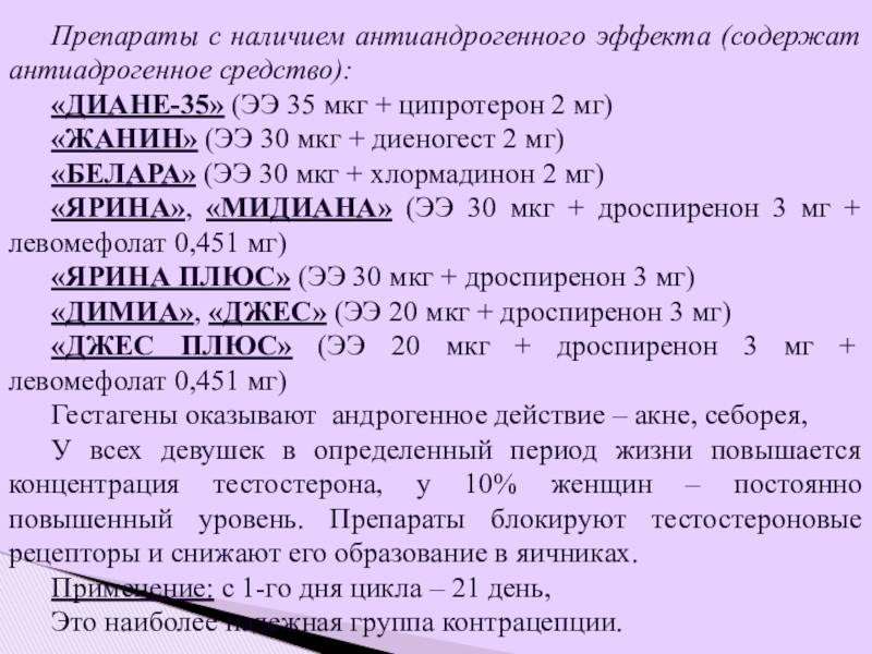 ДАНОЛ (МНН: ДАНАЗОЛ) – снижает высвобождение ФСГ.