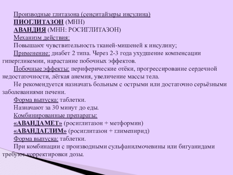 Побочные эффекты: гипергликемия, отеки, головные боли, слабость, мышечные боли.