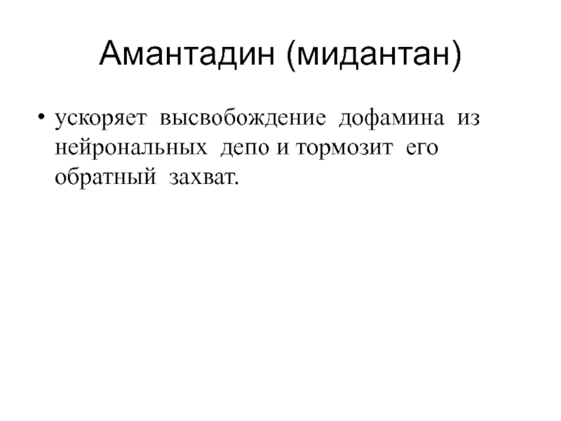 ускоряет высвобождение дофамина из нейрональных депо и тормозит его