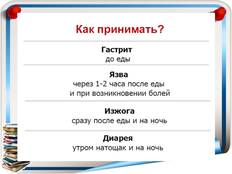 Принимают за 10-15 минут перед едой или во время еды (если принять за 30-60 минут натощак они быстро проходят ЖКТ и тормозят секрецию).