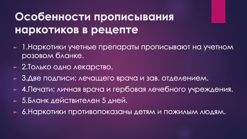 Слайд 19Особенности прописывания наркотиков в рецепте