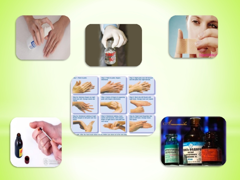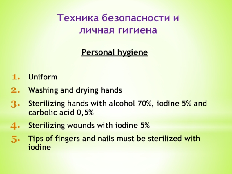 hands with alcohol 70%, iodine 5% and carbolic acid 0,5%