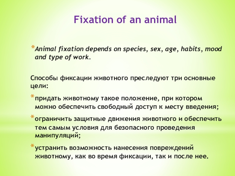 устранить возможность нанесения повреждений животному, как во время фиксации, так и после нее.