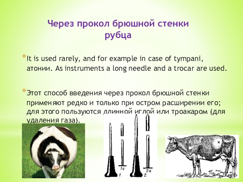 in case of tympani, атонии. As instruments a long needle and a trocar are used.