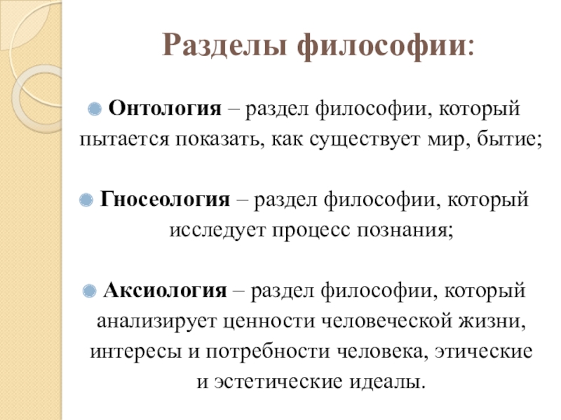 Слайд 15Разделы философии: