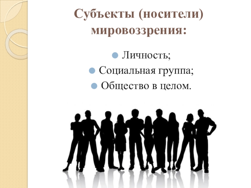Слайд 6Субъекты (носители) мировоззрения: