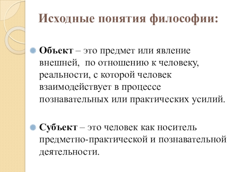 Слайд 17Исходные понятия философии: