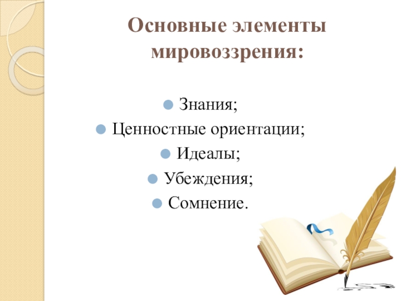 Слайд 7Основные элементы мировоззрения: