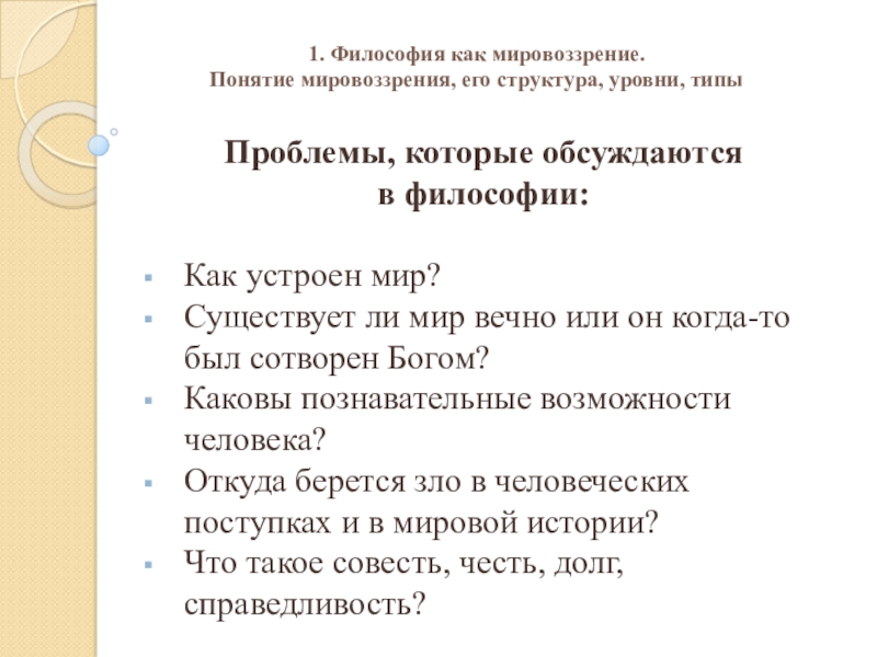 1. Философия как мировоззрение. Понятие