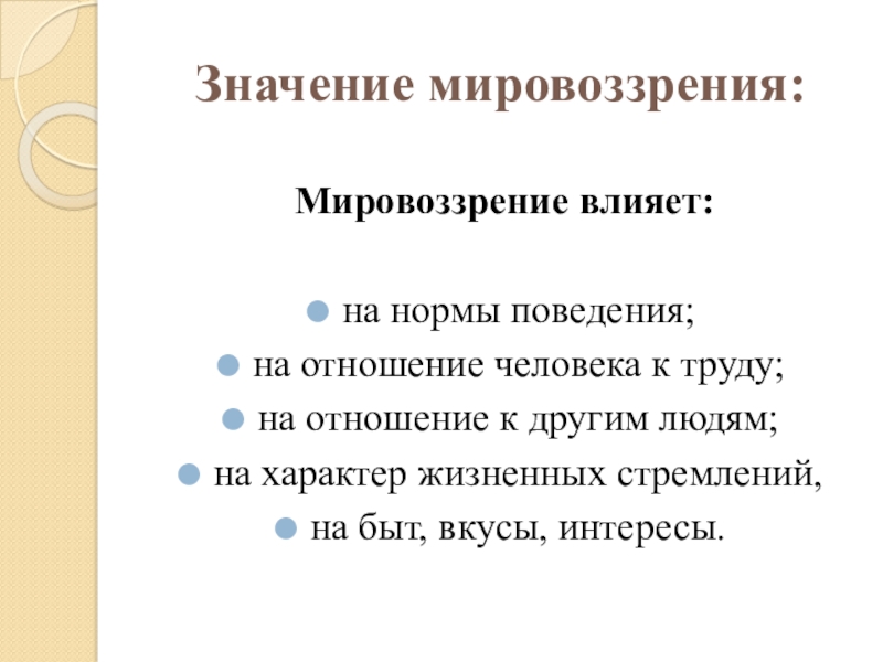 Слайд 8Значение мировоззрения: