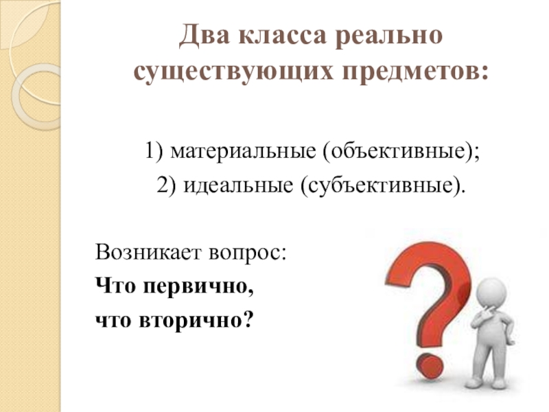 Слайд 18Два класса реально существующих предметов: