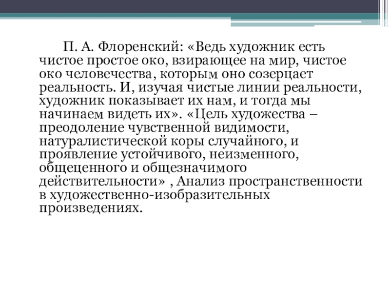 Слайд 8 П. А. Флоренский: «Ведь художник есть чистое простое око, взирающее на
