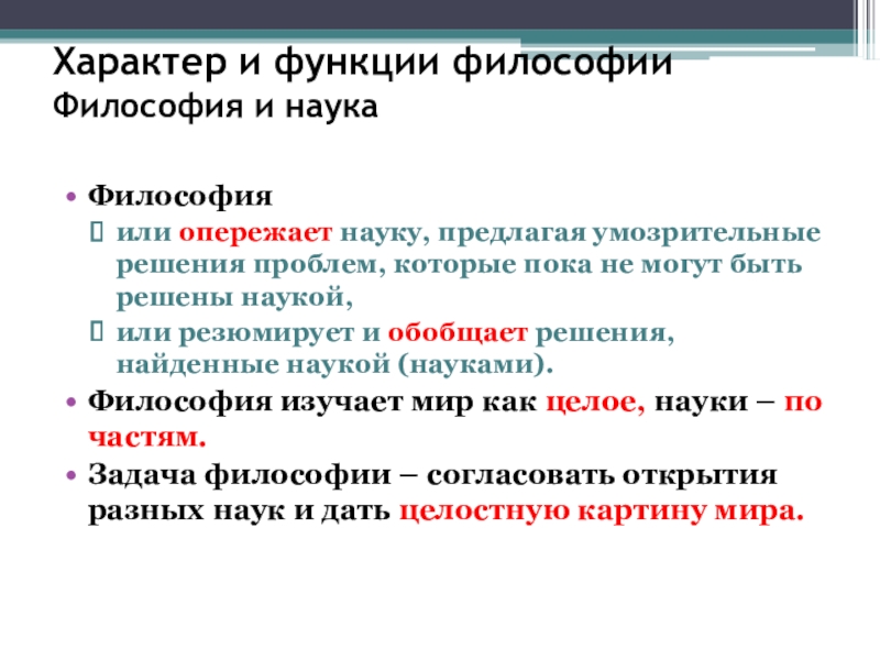 Задача философии – согласовать открытия разных наук и дать целостную картину мира.
