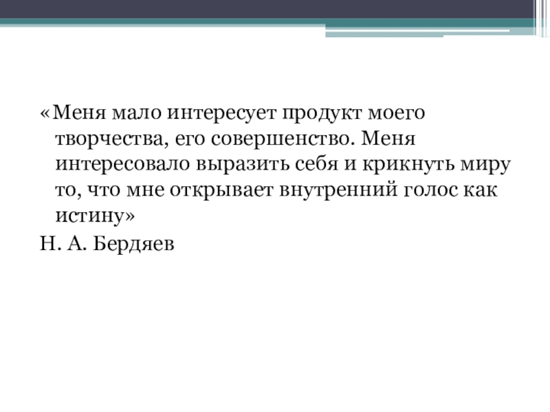 Слайд 3«Меня мало интересует продукт моего творчества, его совершенство. Меня интересовало выразить