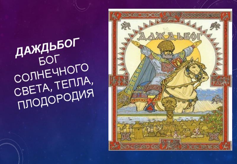 Слайд 16Даждьбог бог солнечного света, тепла, плодородия