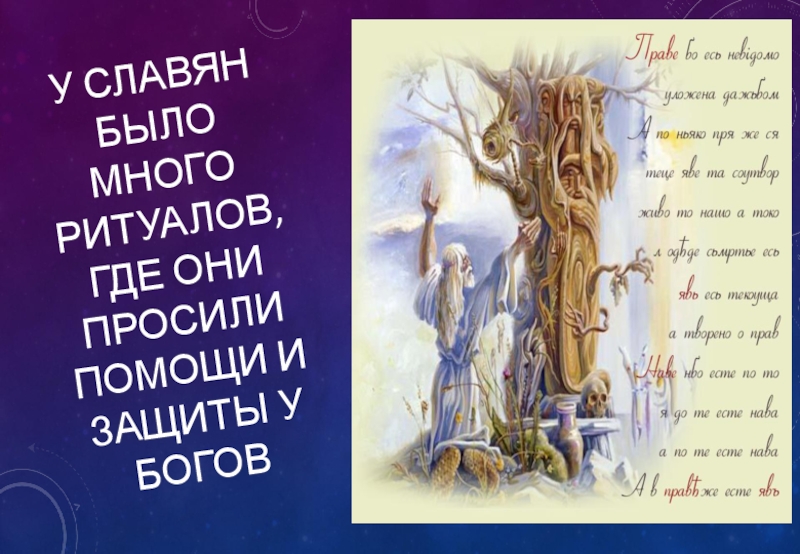Слайд 12У славян было много ритуалов, где они просили помощи и защиты
