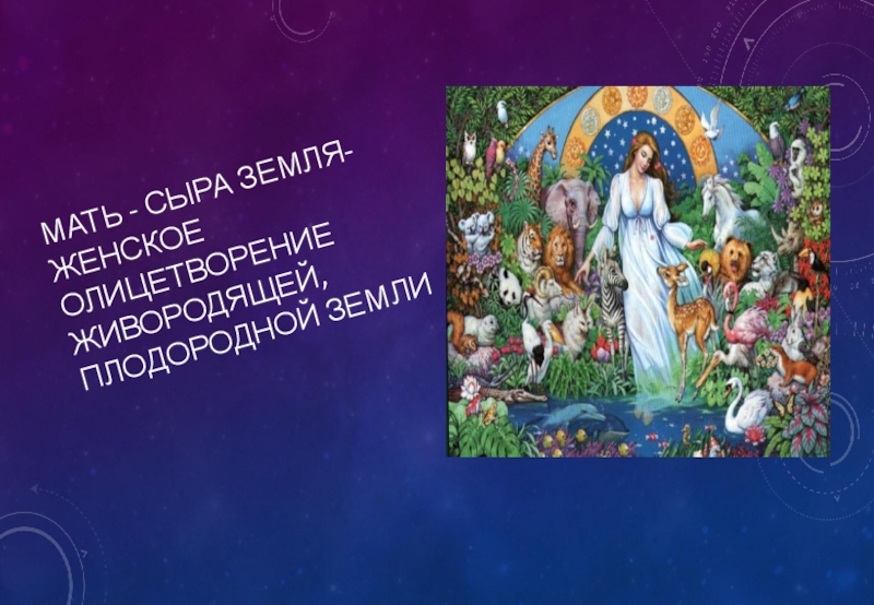Слайд 13Мать - сыра земля- женское олицетворение живородящей, плодородной земли