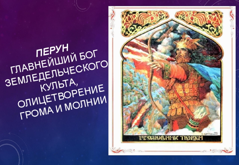 Слайд 14Перун главнейший бог земледельческого культа, олицетворение грома и молнии