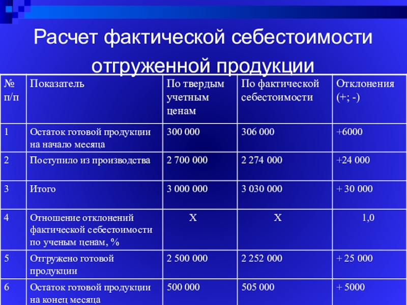 Слайд 7Расчет фактической себестоимости отгруженной продукции