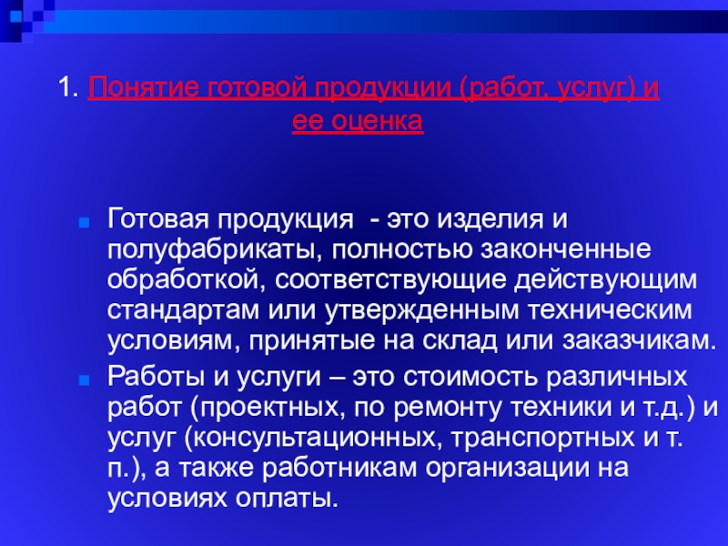 1. Понятие готовой продукции (работ, услуг) и ее оценка
