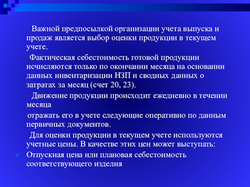 Слайд 12 Важной предпосылкой организации учета выпуска и продаж