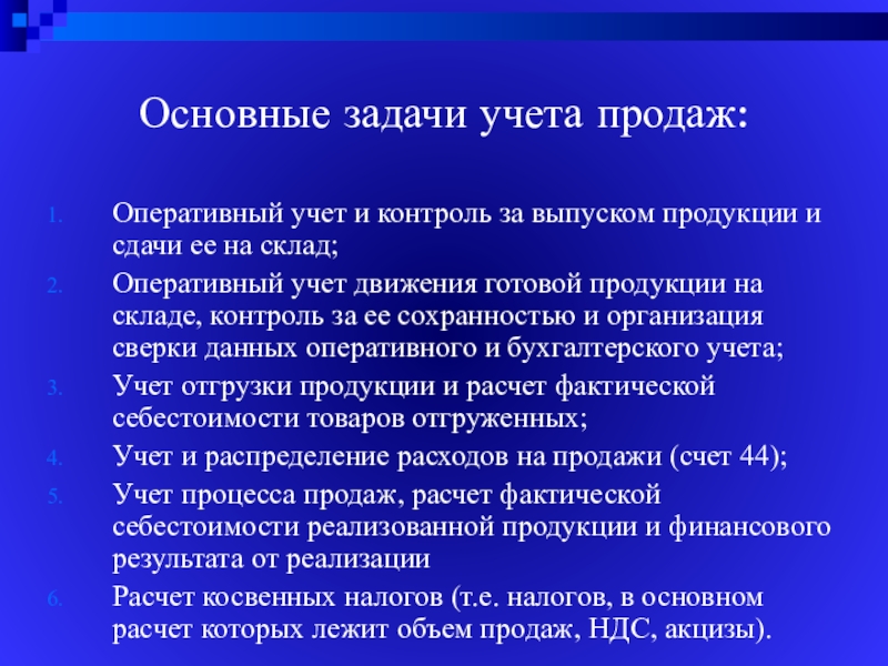 Расчет косвенных налогов (т.е. налогов, в основном расчет которых лежит объем продаж, НДС, акцизы).