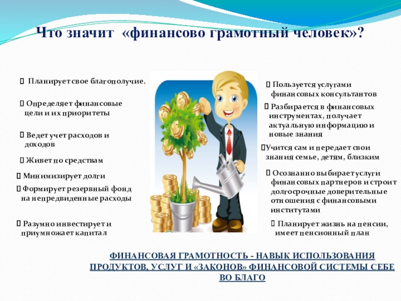 ФИНАНСОВАЯ ГРАМОТНОСТЬ - НАВЫК ИСПОЛЬЗОВАНИЯ ПРОДУКТОВ, УСЛУГ И «ЗАКОНОВ» ФИНАНСОВОЙ СИСТЕМЫ СЕБЕ ВО БЛАГО