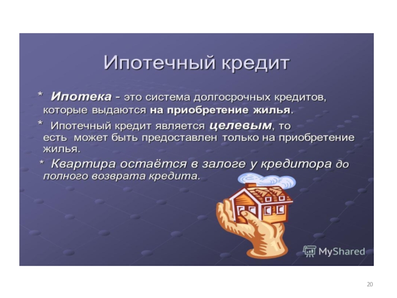 Презентация, доклад по финансовой грамотности Ипотечный кредит 7 класс