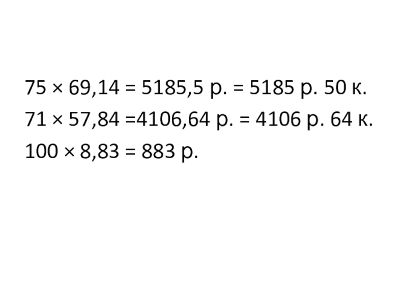 Слайд 1775 × 69,14 = 5185,5 р. = 5185 р. 50 к.