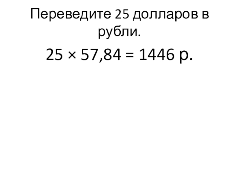Переведите 25 долларов в рубли.25 × 57,84 = 1446 р.