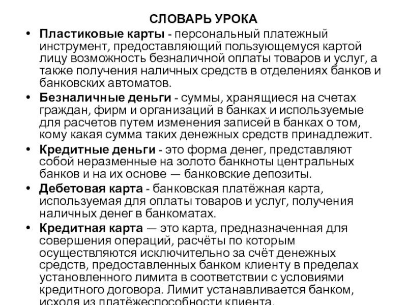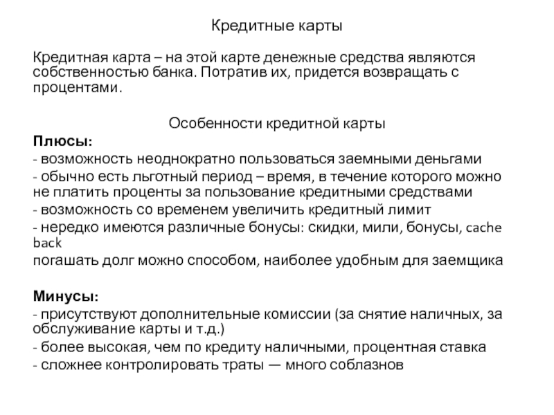 Кредитная карта – на этой карте денежные средства являются собственностью