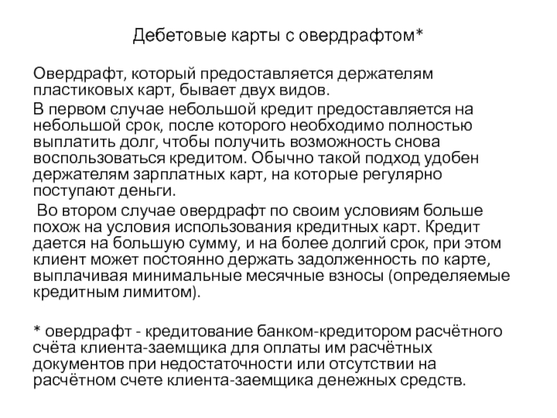 Овердрафт, который предоставляется держателям пластиковых карт, бывает двух