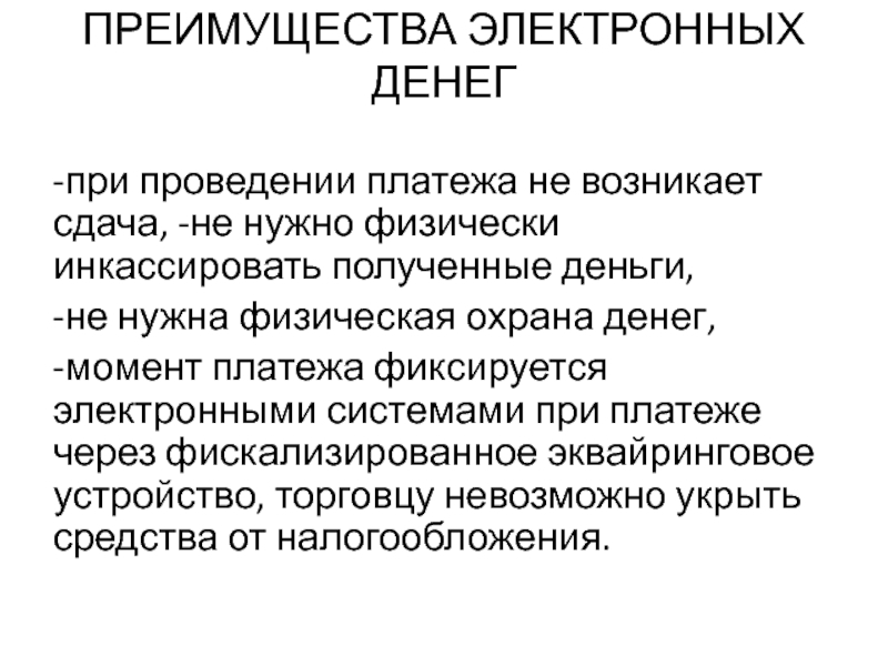 Слайд 24ПРЕИМУЩЕСТВА ЭЛЕКТРОННЫХ ДЕНЕГ