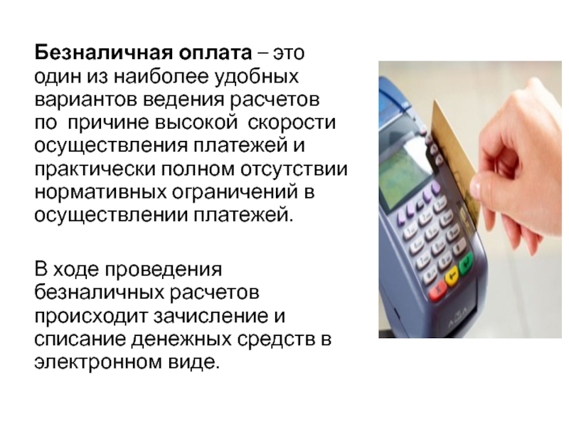 Слайд 5Безналичная оплата – это один из наиболее удобных вариантов ведения расчетов