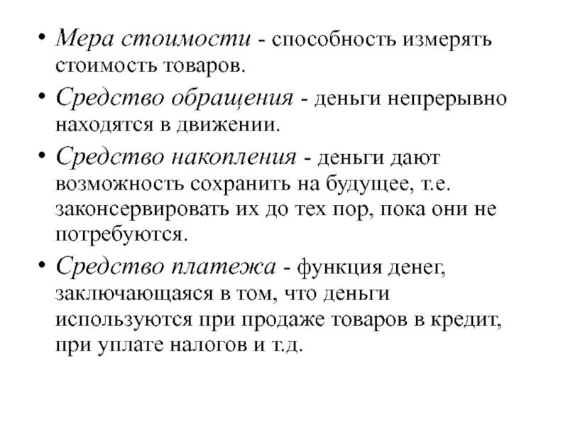 Слайд 3Мера стоимости - способность измерять стоимость товаров.